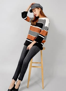 条纹针织衫经典搭配 职场出街休闲造 |
