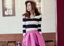 浪漫喇叭裙搭配示范 凸显韩式淑女风 |