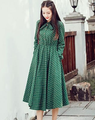| edf40wrjww2fashion_table:content无论是什么身材的女生,都有一套自己的显瘦搭配方法。小编在本单元中的介绍是有关于腿粗女孩的搭配技巧,而首选的单品是长裙,不仅能让你的身材缺点得到掩盖,同时还能添加几分女性魅力。以复古深绿色为底色的连衣裙,立领的版型,配合着复古的设计,散发着知性的魅力。而且衣... |