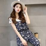 | edf40wrjww2fashion_table:content藏蓝色碎花连体裤,清新浪漫的风格让人如沐春风,内搭白色T恤,也是很经典的层次搭配,七分裤款式,清爽便利,配白色球鞋更具青春感。 黑色碎花连体裤,小v领设计更有女人味,腰线设计的比较高,显得比例更好,淡雅的印花带来小清新的味道,配时髦短靴增添摩登感。 吊带款... |